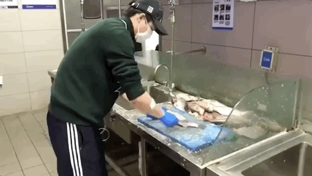 经常进出火神山、雷神山等医院,看到医护人员很辛苦,我就萌发了给他们改善伙食的想法,想让他们吃上新鲜的鱼。于是我在公司发起了募捐,然后联系了生鲜电商,采购了1639条鲈鱼,让他们免费加工以后送到医院。电商那边人手不够,我和同事就全程加入到现场的宰杀和烹饪打包、以及整合运送的所有环节当中。