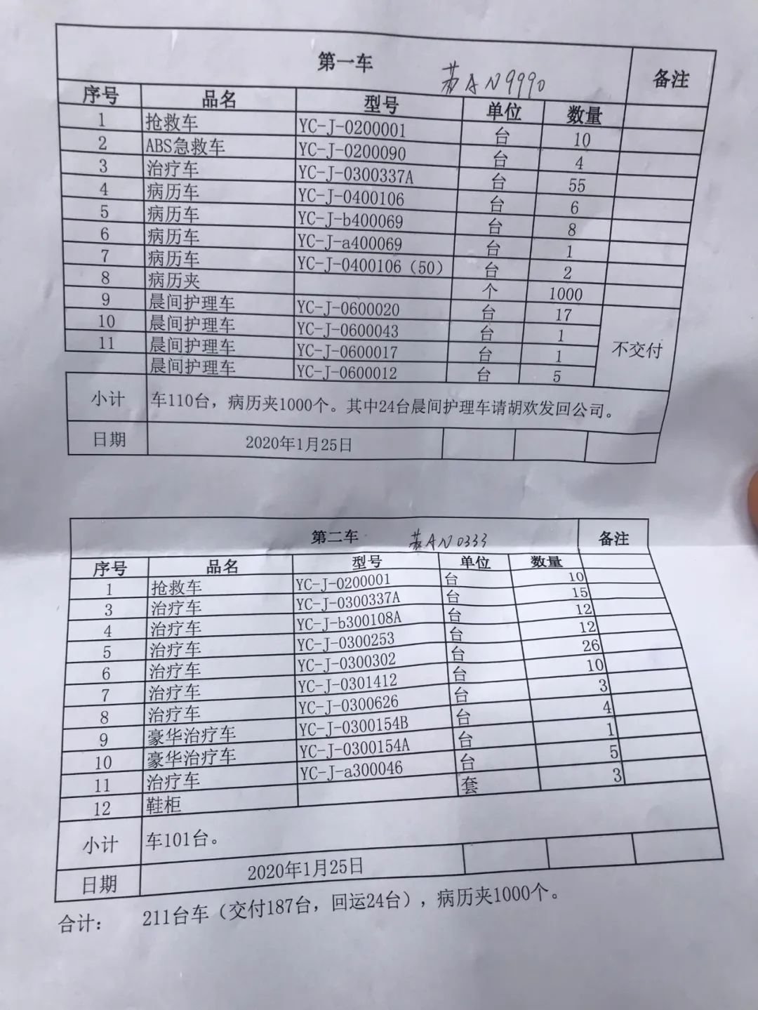 于是,我心一横,找车!到凌晨2点,有人和我联系,愿意去,但是费用要一万三,我说没问题,只要你能来。为了节约时间,我连夜开车从安徽到了南京,早上6点跟司机会合。然后我们去到医疗器械厂,从早上8点一直装到下午5点准时出发,紧接着马不停蹄直到第2天凌晨2点卸货。