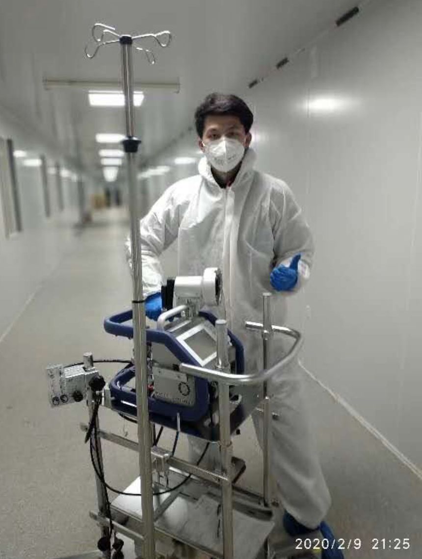 △杨杰和他运送至火神山医院并进行组装的第一台ECMO设备