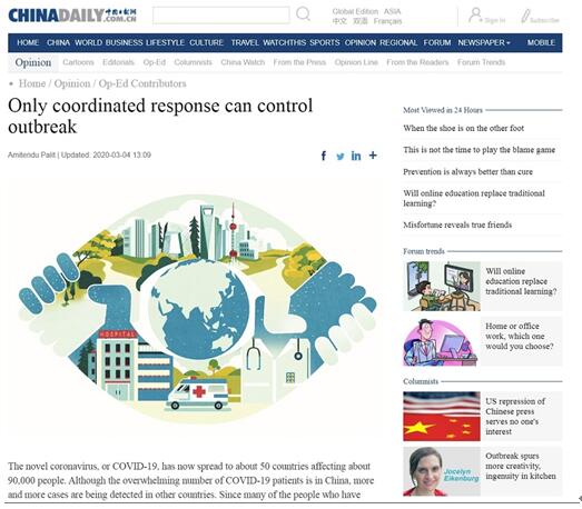 新加坡国立大学南亚研究所高级研究员阿米坦都·帕里特近日在中国日报撰文称,新冠病毒已经开始向亚洲其他地区和欧洲蔓延,这一事件将对全球公共卫生产生重大影响,各国应该携起手来,共同抗击疫情。
