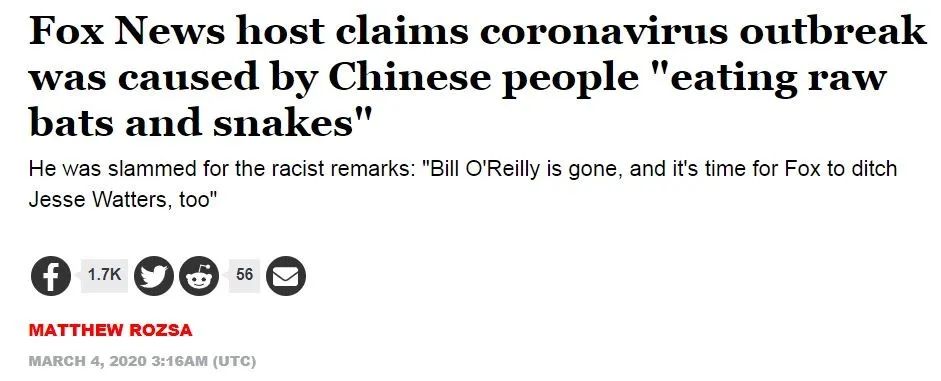 这个主持人名为杰西·瓦特斯,供职于保守派媒体福克斯电视台,历来言论中对中国存在根深蒂固的偏见。随着疫情在美国扩大,他又抑制不住将矛头直指中国,言论中尽显扭曲心态。