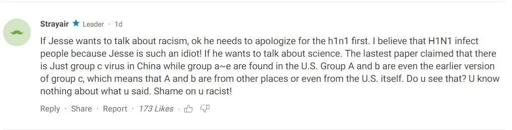 一个名为“Heaholic”的网友对瓦特斯说:“向中国人道歉!难以相信在21世纪还有种族主义者!中国也是(新冠肺炎疫情的)受害者。”