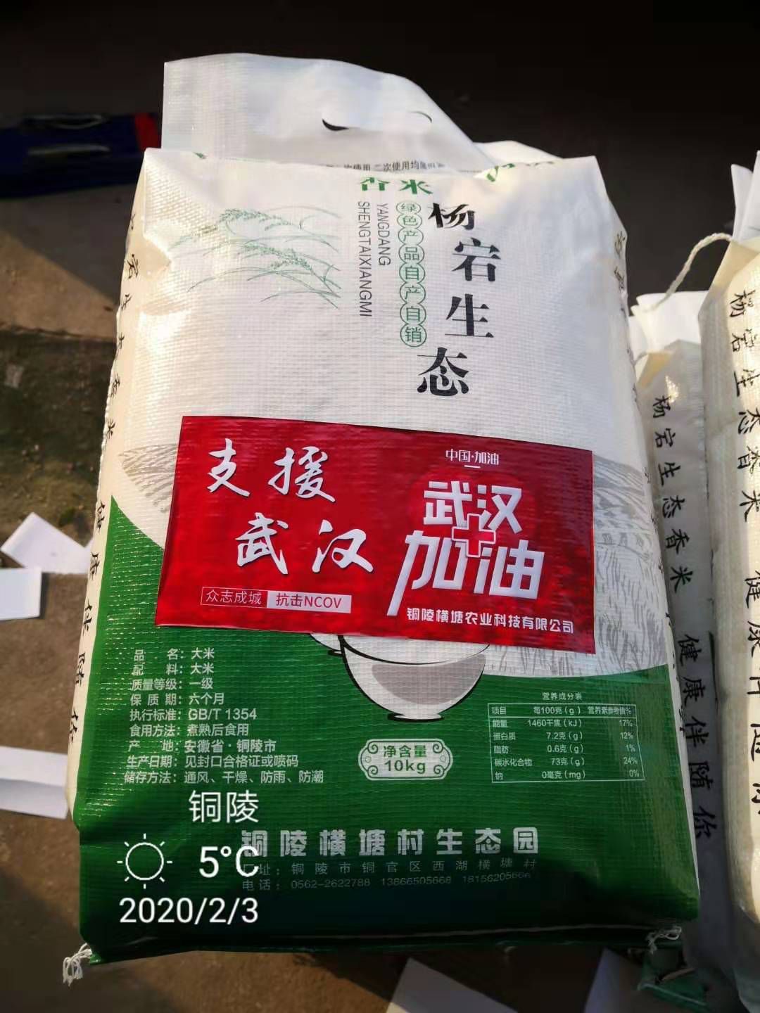 ↑图为安徽铜陵向武汉提供的大米。过士宁摄