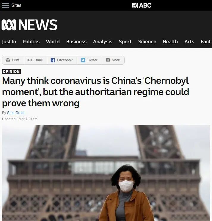 澳大利亚广播公司网站2月27日发表文章,原题为《许多人认为冠状病毒是中国的“切尔诺贝利时刻”,但中国政府可能证明他们是错误的》。