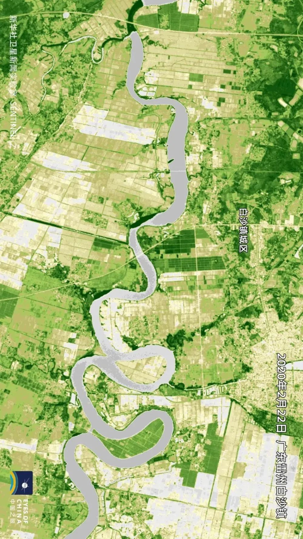 从上面两张卫星图对比可见,相较于1月中旬,雷州农田灰色的水面反射面积明显扩大。