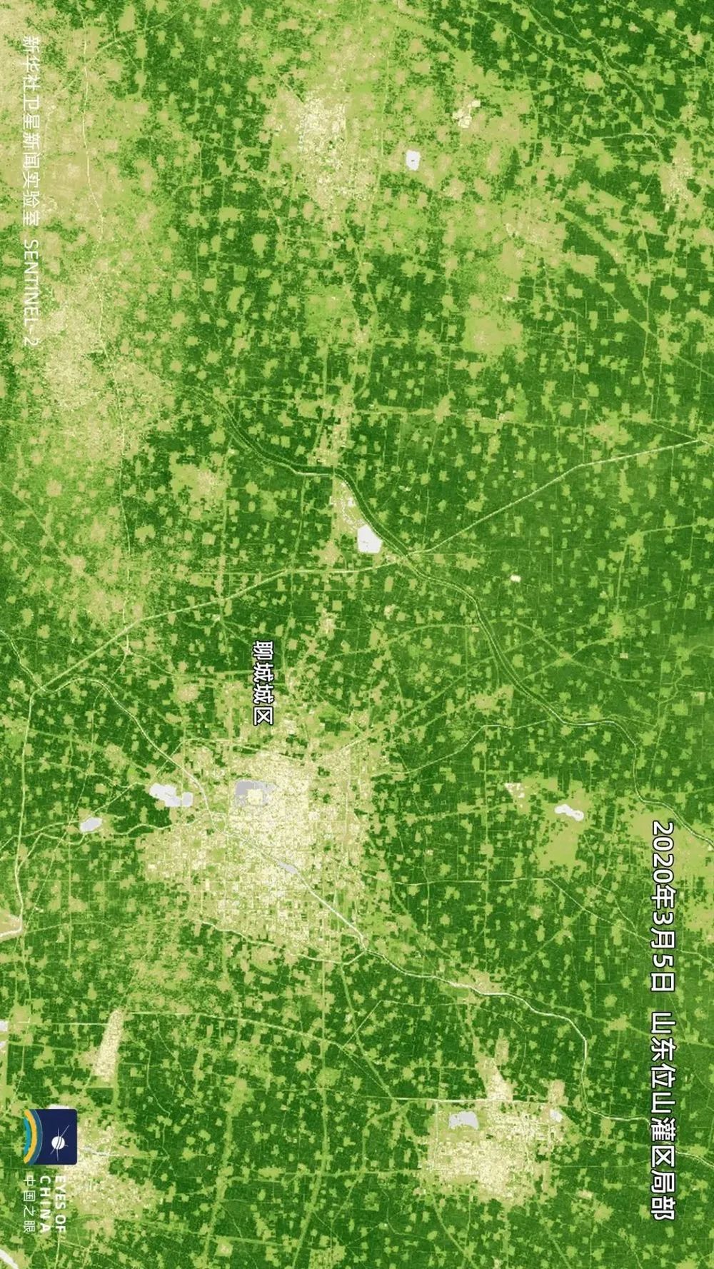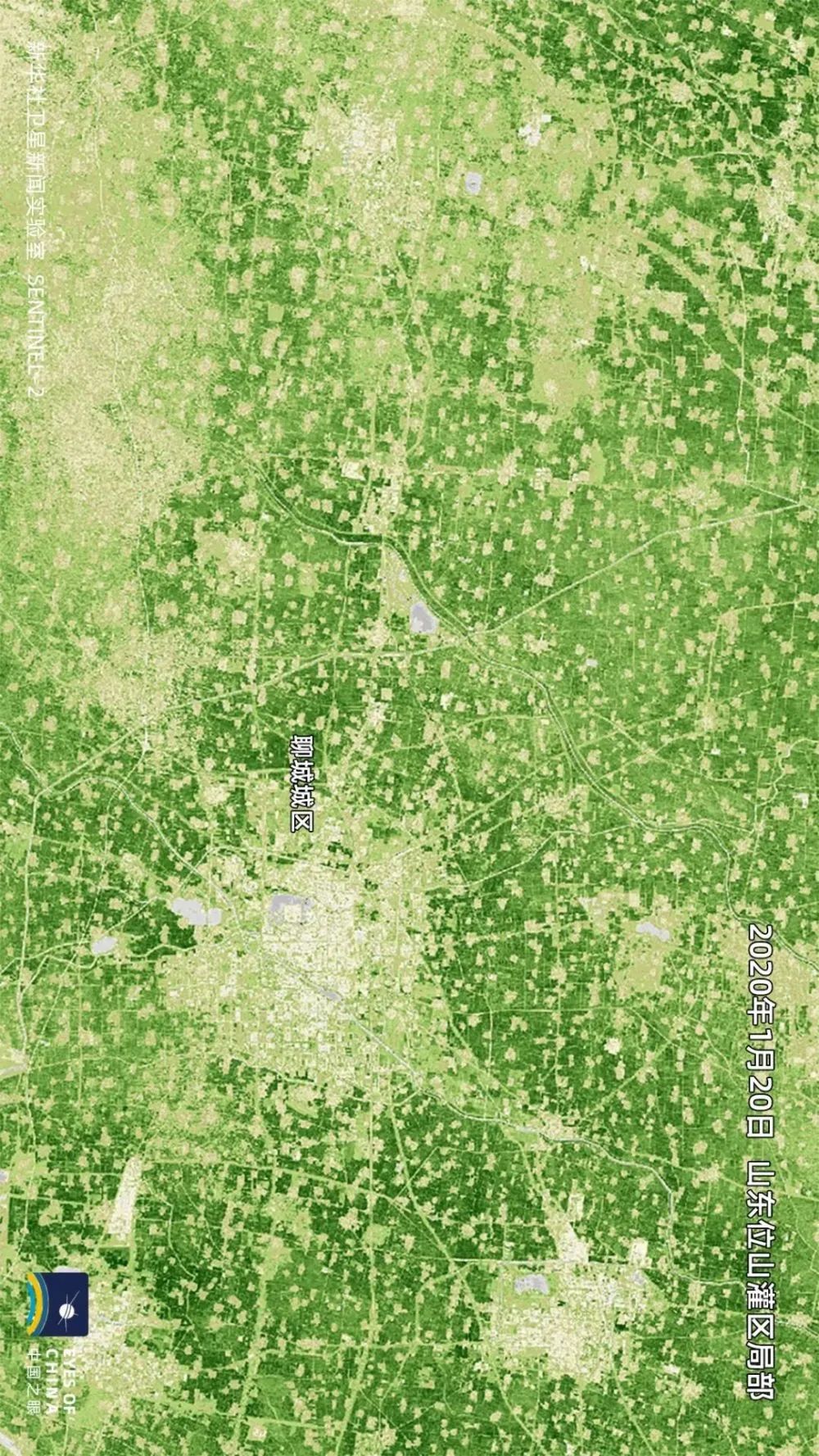 俯瞰位山灌区这样遍布农田的平原地区,叶绿素水平的变化,直接反映冬小麦长势。
