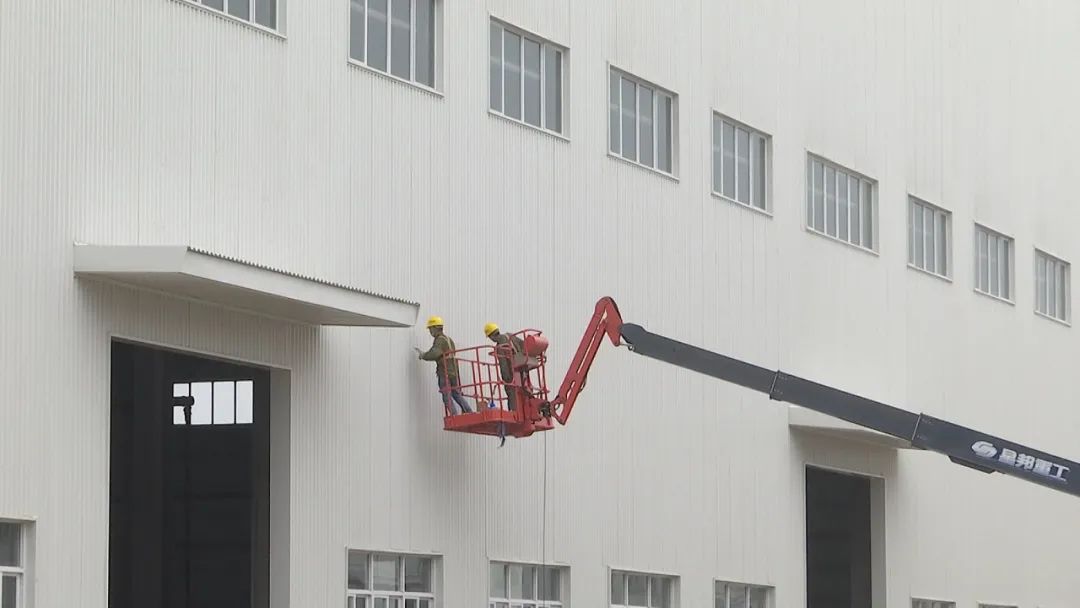 在洋浦海南逸盛50万吨多功能新型材料项目现场,工人们正在安装分拣车间窗户和墙面板。目前项目整体工程完成约60%,3月15号将全面复工,5月初全面完成设备安装工作。