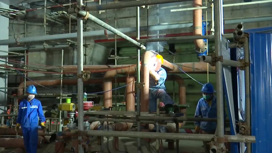 在海南文昌燃气-蒸汽联合循环电厂项目施工现场,工人们正有序地开展调试、安装等工作。目前,项目整体已完成83%,计划本月底实现首台机组并网发电。项目建成后,除了电力供应外,还可承担电网调峰工程,确保海南电网安全稳定运行。