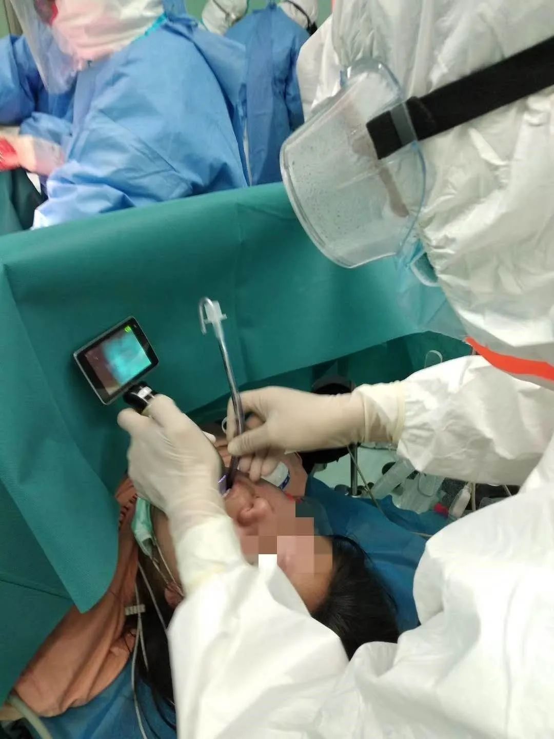 “气管插管是与新冠肺炎患者气道接触最为密切的临床操作之一,插管时医生距离患者的口腔不到20厘米。在插管的那一刻,容易产生分泌物喷溅、飞沫、气溶胶扩散等情况,患者呼吸道呼出的病毒量也最大,执行操作的医生被感染的风险极高。杜肖南介绍,“然而,当需要我们进行气管插时,就说明患者出现了危险,我们必须与死神竞速,为了挽救患者的生命,大家都没有畏惧。”