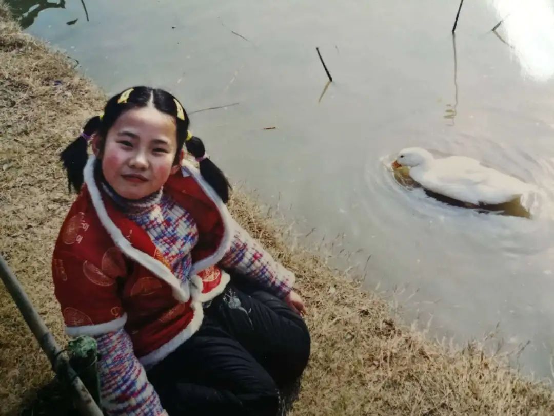 2003年“非典”结束后,郭欣怡与家人在武汉东湖梅园湖边散步。