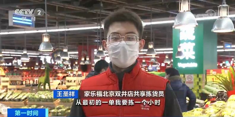 家乐福北京双井店共享拣货员王圣祥:从最初一单我要拣一个小时,现在一千元的大单子,一单有四十多件商品,会在二十分钟之内搞定。