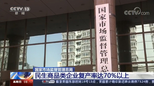 国家市场监督管理总局:民生商品类企业复产率达70%以上