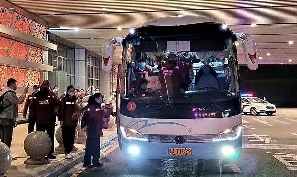 3月17日晚,首批凯旋归来的贵州援鄂医疗队34名队员抵达贵阳北站,登上早已在场等候的大巴车,前往统一安排的酒店进行隔离休整。