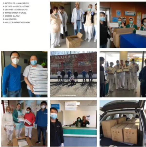 在中国政府积极援助的同时,西班牙当地的华侨华人和中国留学生也在尽自己绵薄之力,捐赠口罩、洗手液、消毒剂等物资。帮助医疗资源紧缺的当地医院和警察局渡过难关。马德里大区的拉巴斯(Hospital La Paz)和拉蒙•卡哈尔(Hospital Ramón y Cajal)两家医院近日收到了一对中国夫妇捐赠的物资。