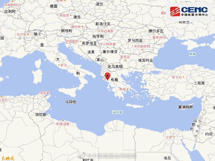 时刻新闻 —分享— @中国地震台网速报 3月21日消息,中国地震台网正式测定:03月21日08时49分在希腊(北纬39.35度,东经20.50度)发生5.6级地震,震源深度10千米。@中国地震台网速报 图 来源:中国地震台网速报 编辑:张天野