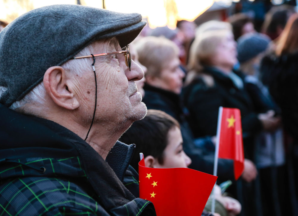 2月22日,在塞尔维亚首都贝尔格莱德举行的一场声援中国抗击新冠肺炎疫情的音乐会上,当地民众手持中国国旗表示对中国的支持。新华社记者石中玉摄