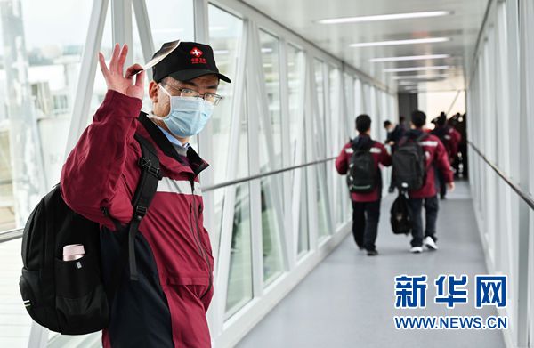 3月25日,中国第三批赴意大利抗疫医疗专家组成员在登机。新华社记者 魏培全 摄