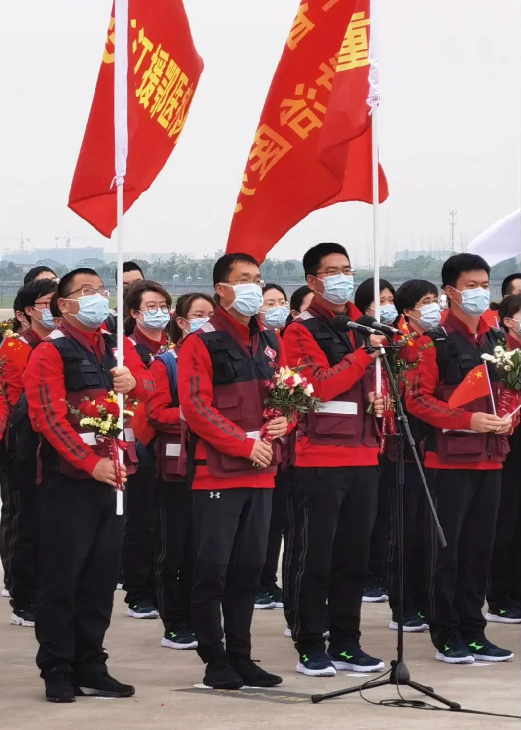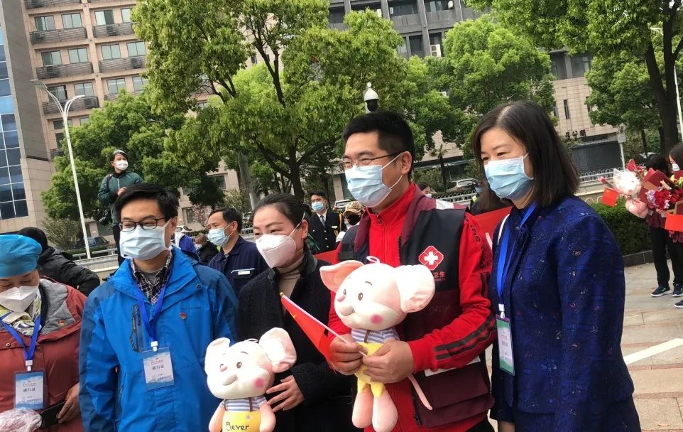 3日中午临别之际,支援医院领导及同仁、当地商会、市民、志愿者和驻地酒店员工一起为医疗队举行了简朴却又热烈的欢送仪式。队长葛明华动情表达:“在武汉抗疫的45天里,我深深体会到了艰辛、磨难、疲惫、温暖、感动和希望。这是一座英雄的城市,武汉人民的坚韧、顽强和感恩一次次触动着我们。”