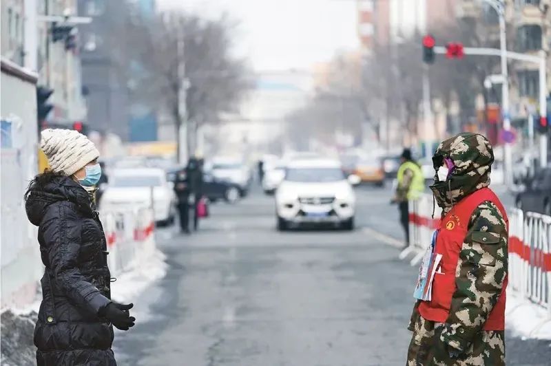1993年出生的李文琦,是在深圳工作的哈尔滨人,春节返乡回哈后成为社区志愿者。她说:“国家有难,我们‘90后’正值青年,身强力壮,应该往前冲。”图为李文琦(右)在检查往来车辆人员的手续证明。新华社记者 王建威/摄