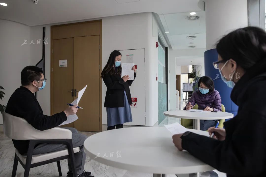 为了方便面试者,减少他们的出行压力,面试安排在下午进行。因为进入面试环节的求职者大都是返京人员,为此,他们专门设置了等待区,仔细核实求职者的隔离情况和身体状况,分时段进行面试。