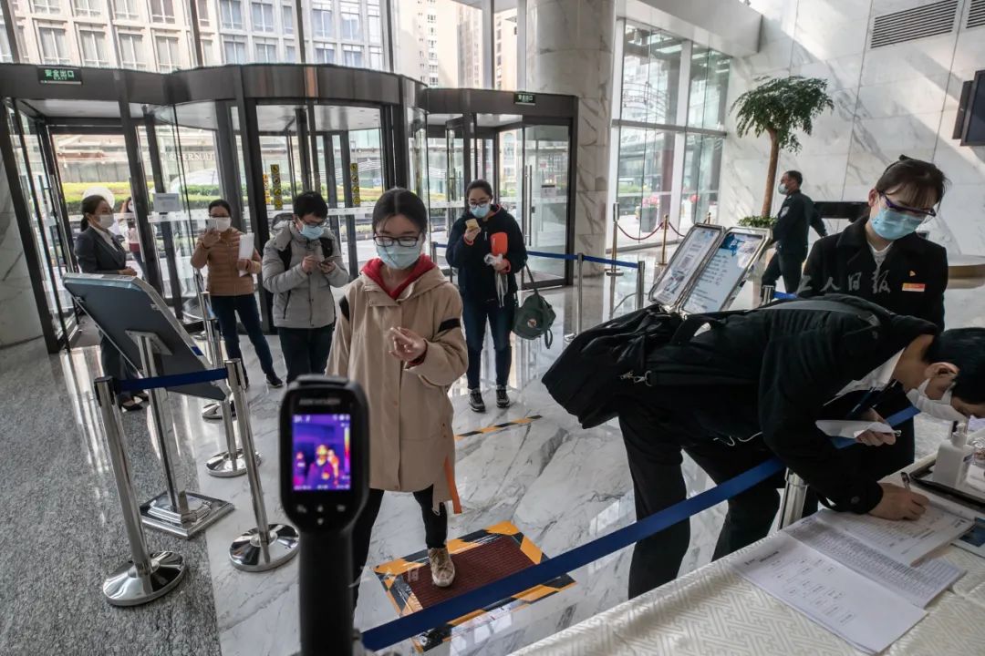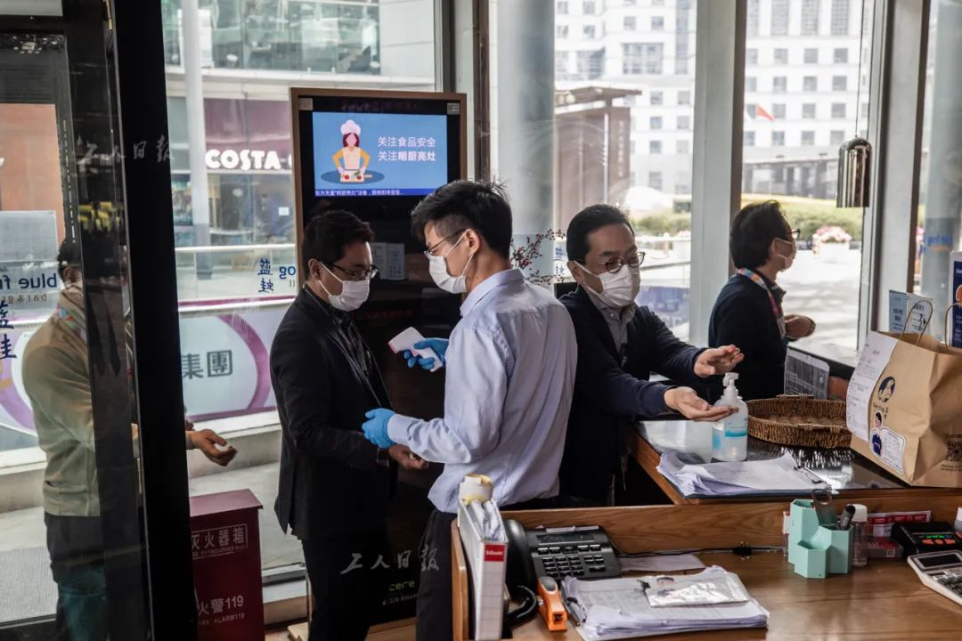 3月30日上午,一家互联网公司的员工扫码进入写字楼时被工作人员拦住。经询问后得知,该员工自我隔离期刚过,是春节后第一次进入本楼,需要填写相关表格并领取出入证后才能正常出入。这样重复的询问工作,值守大厅的工作人员每天都会遇到。疫情期间,北京CBD管委会联合多部门对辖区内的500多座商务写字楼进行了八轮地毯式督导检查,倡导企业弹性复工。目前,远洋光华国际商座已有超过九成的企业实现复工。