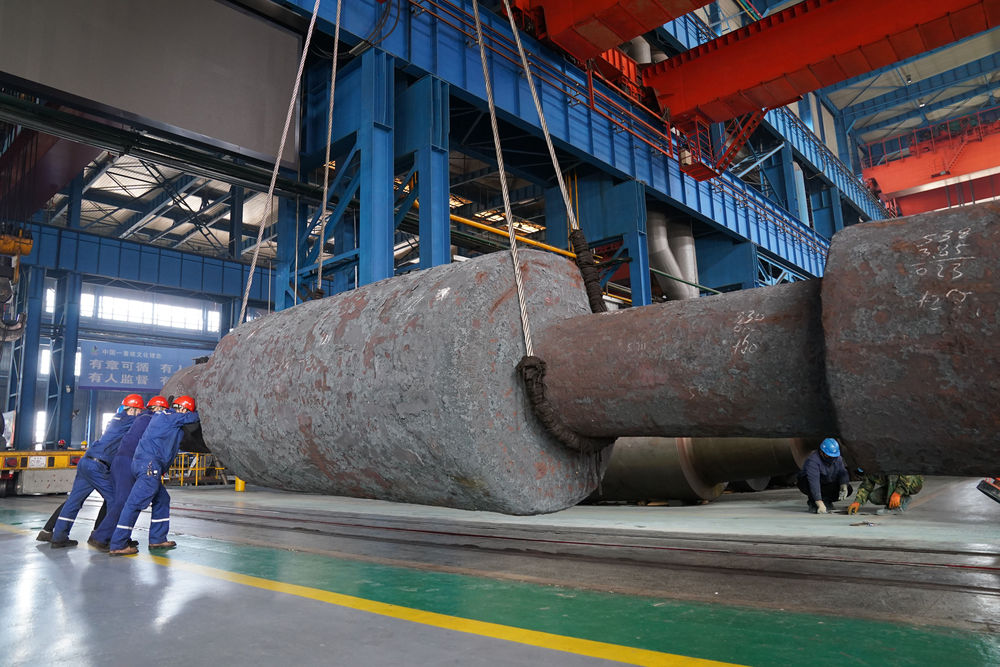 4月10日,在中国一重的生产车间,工人在进行生产作业。今年一季度,位于黑龙江省齐齐哈尔市的中国一重集团有限公司有力防控疫情,有序复产复工,有效推进各阶段目标任务落地,营业收入同比增长52.47%,利润总额同比增长103.37%,实现经营“满堂红”。(新华社记者王建威摄)