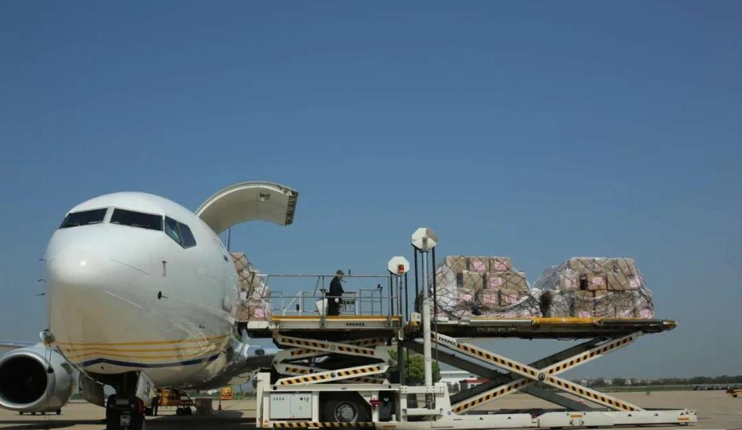 4月15日上午,武汉天河机场,湖北捐赠给黑龙江的医用物资正在装卸。这批医用物资将运送到黑龙江省绥芬河市,用于当地新冠肺炎疫情防护救治。
