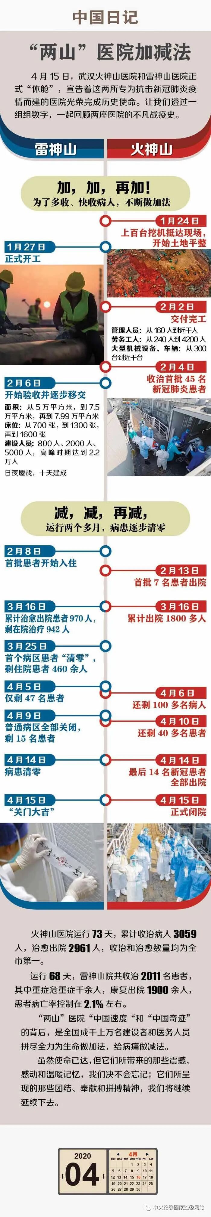 “武汉雷神山医院,休舱!”4月15日上午,武汉雷神山医院正式关闭,结束了它在此次武汉抗击新冠肺炎疫情中的特殊使命。武汉火神山医院也在同一天关闭。