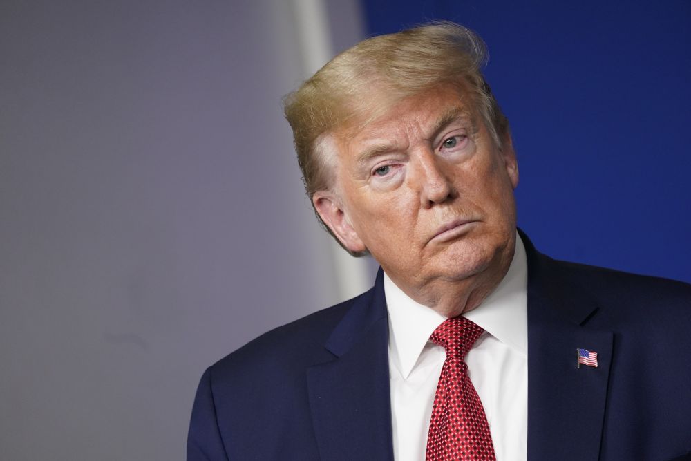 4月16日,美国总统特朗普在白宫与冠状病毒应对工作组举行记者会。欧新社