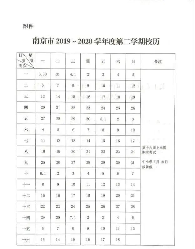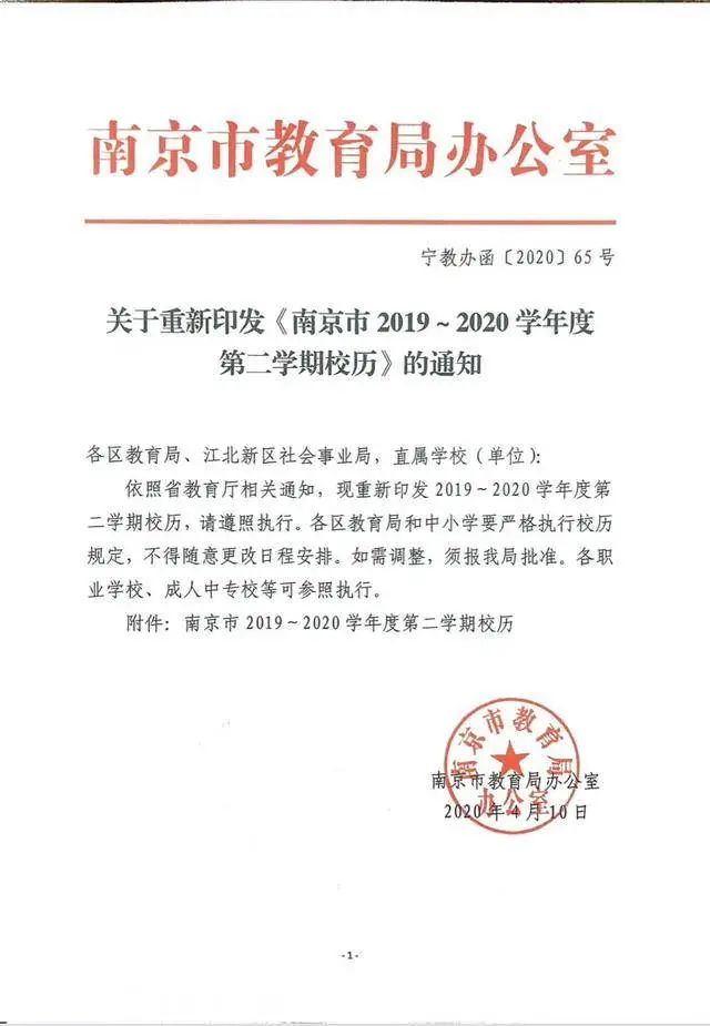 南京市教育局发布了关于重新印发《南京市2019~2020学年度第二学期校历》的通知。通知提到,各区教育局和中小学要严格执行校历规定,不得随意更改日程安排。各职业学校、成人中专校等可参照执行。