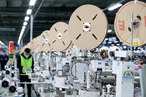 工人在山东青岛一家外资企业车间工作。图片来源:新华社