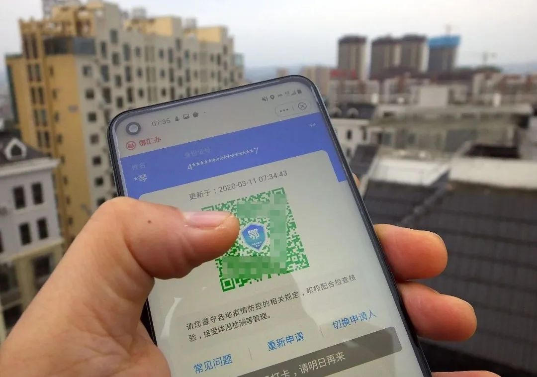 2020年3月11日,湖北宜昌,市民展示“湖北健康码”绿码。