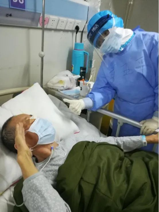 第二天查房时,我大声告诉他要拍个视频发给他的女儿,他挥起手,嘴里含糊地发出声音,我心里非常感动。我把视频发给爷爷的女儿,她的回复同样让我感动:“感谢医生,是你们救了武汉,是你们救了我父亲,有了你们,武汉一定能够胜利!武汉加油,中国加油!”