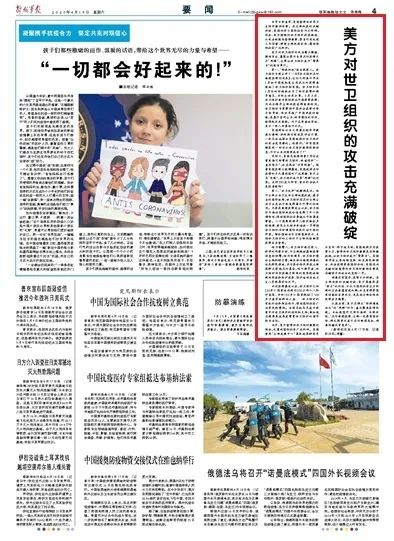 美方对世卫组织的攻击毫无根据,漏洞百出,暴露出其为自身应对疫情不力“甩锅”、企图让世卫组织成为“替罪羊”的政治算计。