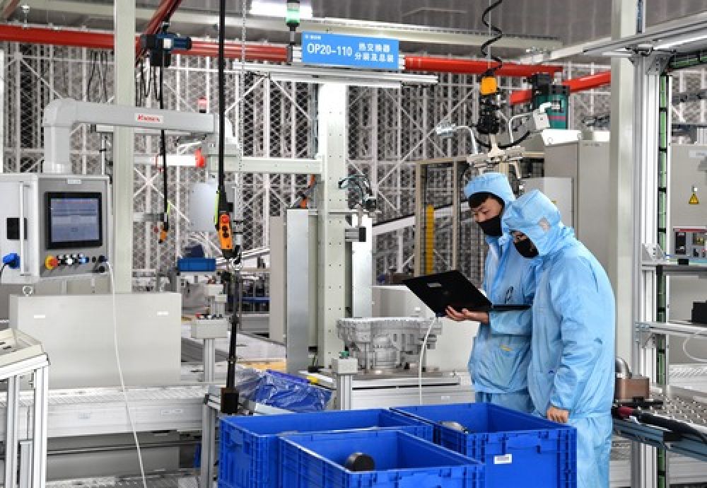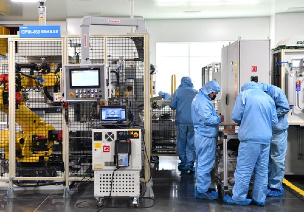 4月1日,工作人员在陕西咸阳法士特集团产业基地车间内调试设备。新华社记者 张博文 摄