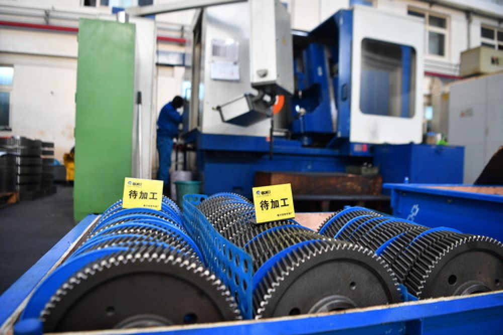 工作人员在陕西秦川机床工具集团股份公司生产车间查看设备情况(2019年12月26日摄)。新华社记者 张博文 摄