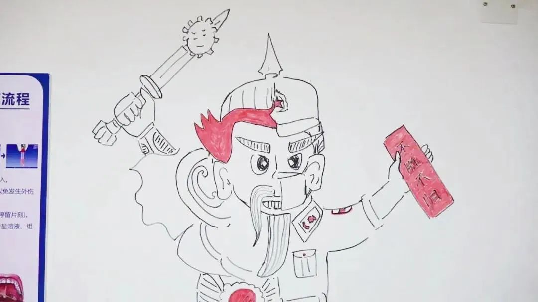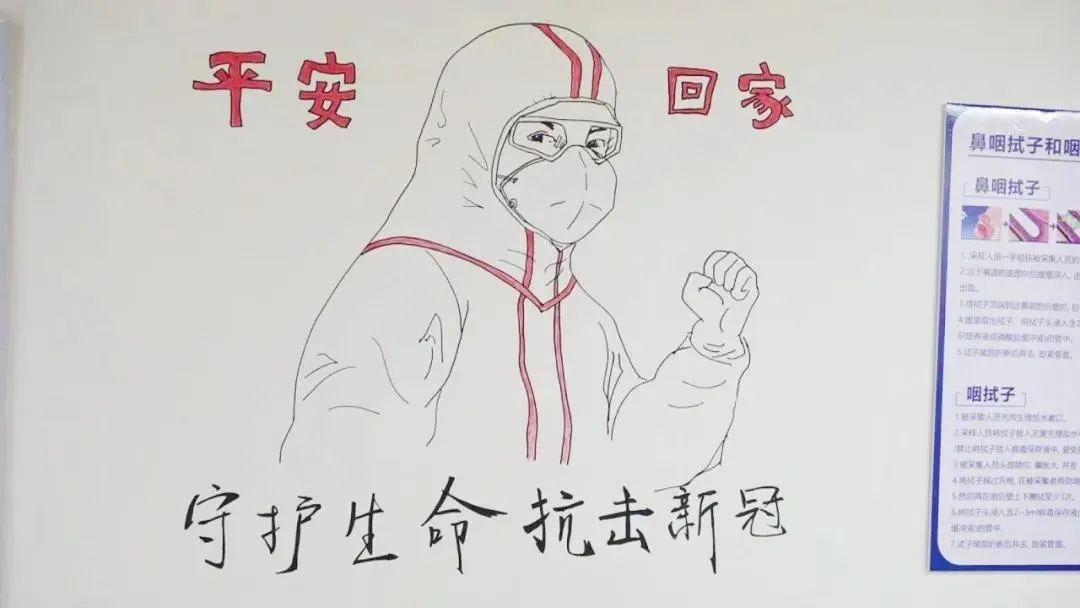 还利用下班时间即兴在墙上作画
