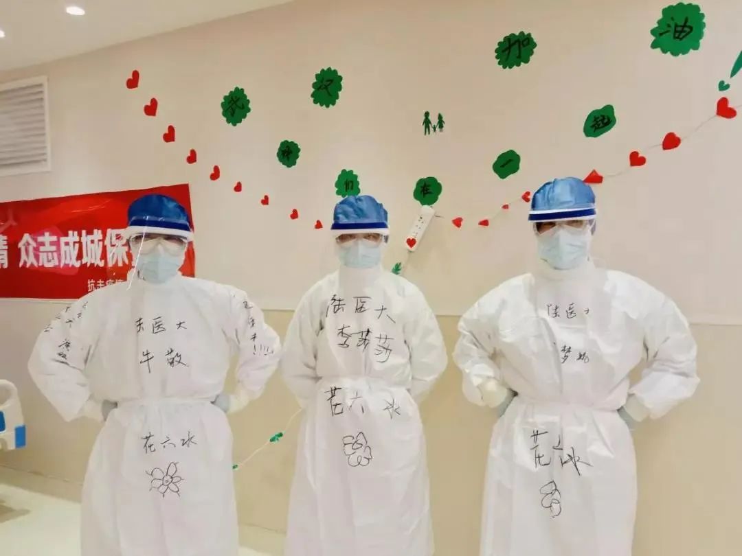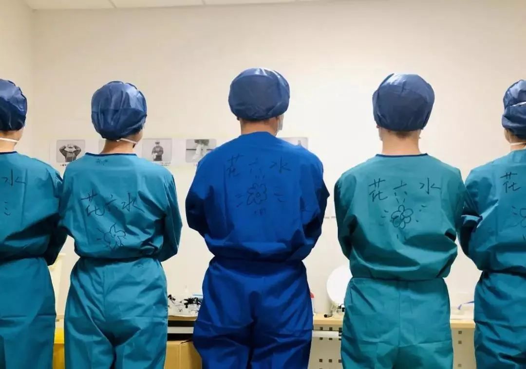 几位护士的防护服上