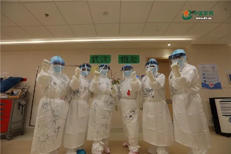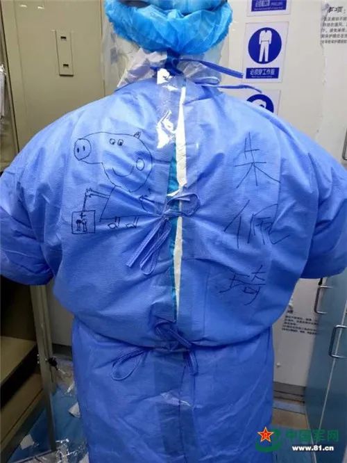 军队支援湖北医疗队队员朱佩琦防护服上