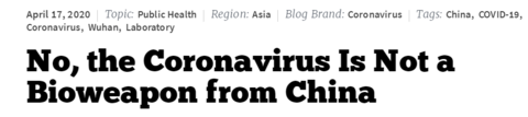 报道称,俄亥俄州立大学的研究表明,没有任何可靠证据证明病毒来自实验室。罗格斯大学化学生物学教授理查德·埃布赖特表示,“基于病毒的基因组和特性,没有任何迹象表明它是一种工程病毒。”《新科学家》周刊也指出,遗传学家可以分辨出病毒是人造的还是人为改变的。“病毒的基因组已经被测序,如果它被改变了,我们会看到插入基因序列的迹象。”