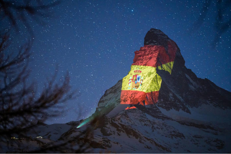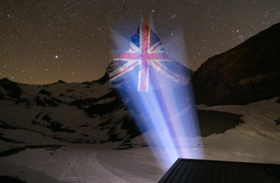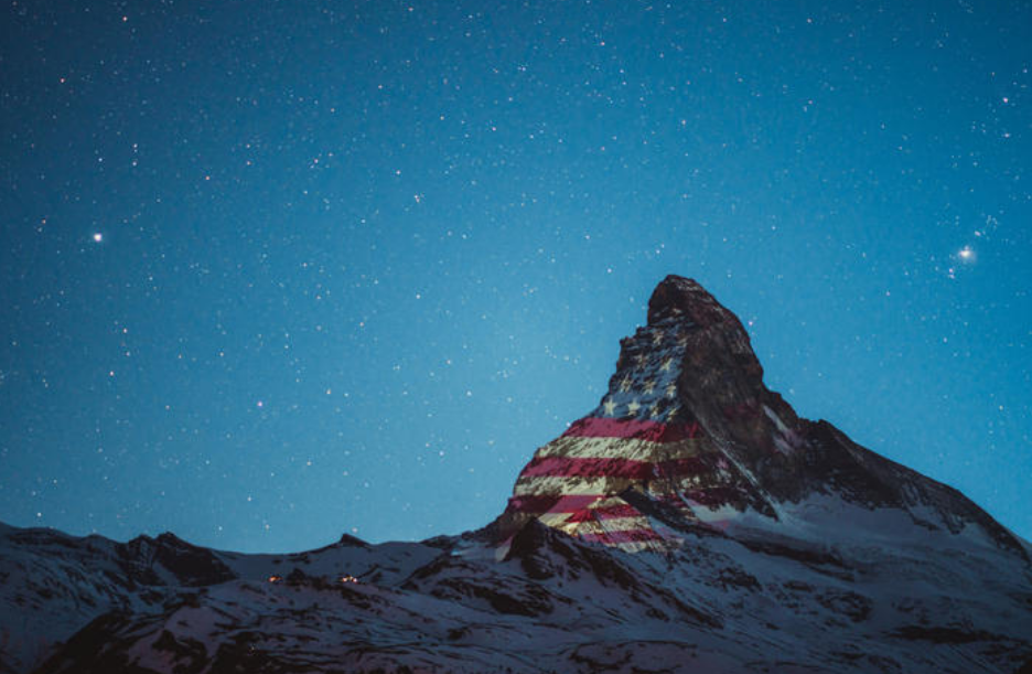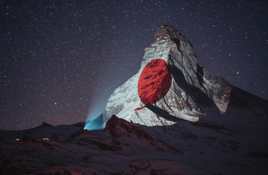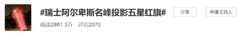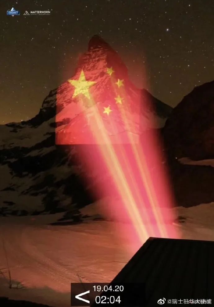 #瑞士阿尔卑斯名峰投影五星红旗#