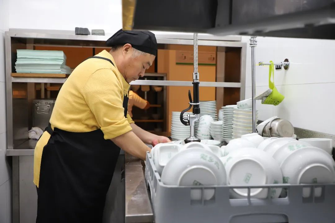 每年春节营运高峰期,束从轩都在餐厅后厨帮忙刷碗。