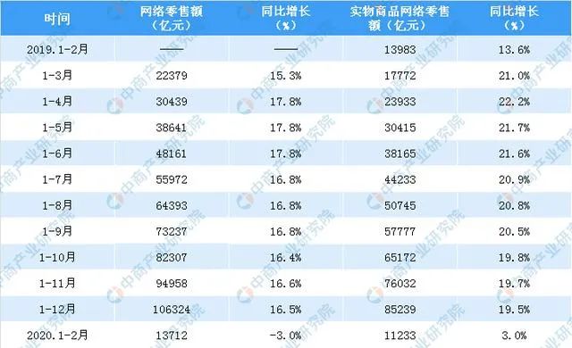 1-2月份,全国实物商品网上零售额11233亿元,同比增长3%;智能手表、智能手环、半导体分立器件产量同比分别增长119.7%、45.1%和31.4%。2月份快递业务量完成27.7亿件,同比增长0.2%。