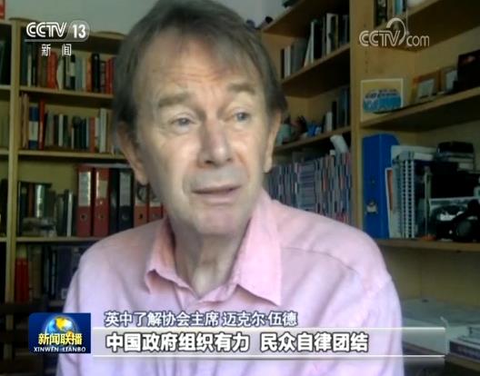 英中了解协会主席 迈克尔·伍德:中国政府组织有力,民众自律团结,疫情防控形势持续向好。我坚信,特别是现在,互相理解、合作、对话是最重要的。我们致力于英中之间的合作,世界范围内的合作也非常重要,现在的疫情只能通过国际合作来解决。