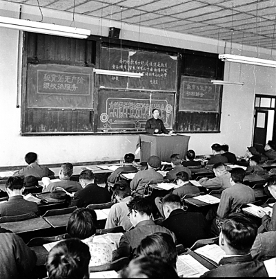 当时校门口只有一条比较宽的泥路,公交线路也只有一条,每隔二三十分钟才来一辆公交车。路上尘土飞扬,下雨天时,公交车几乎是在泥浆里前行。即使条件艰苦,也没有对我们的工作情绪产生丝毫影响。一些教师一周要上四五十节课,大家怀着建设新中国的热情,全身心扑在了工作上。