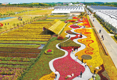 安徽省郎溪县某扶贫产业基地在“五一”假期举办花卉展,吸引周边群众赏花游玩。李晓红摄(影像中国)