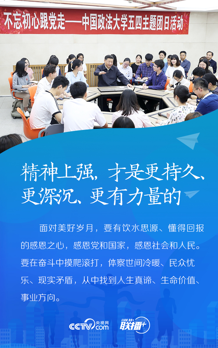 去年4月30日,习近平总书记在纪念五四运动100周年大会上发表重要讲话,言之谆谆、期望殷殷。其中,有为人处世的箴言,有成长成才的指导,有创新创造的激励,激发起广大青年为梦想不懈奋斗的蓬勃力量。