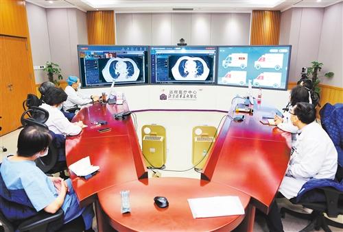 依托中国联通“5G+医疗云”,北上广鄂四地专家为雷神山医院危重症患者远程会诊。(资料图片)