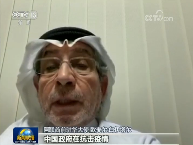 阿联酋前驻华大使 欧麦尔·白伊塔尔:中国政府在抗击疫情恢复生产方面作出的贡献,与习近平主席提出的构建人类命运共同体的理念高度契合。疫情的冲击是全球性,各国都无法独善其身,置身事外,只有团结合作才能走出危机恢复经济。