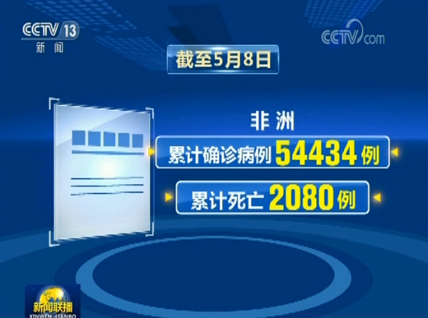 非洲累计报告确诊病例54434例,累计死亡2080例。